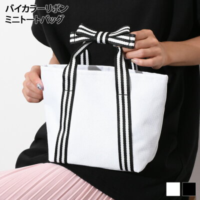 バイカラーリボンハンドルミニトートバッグ レディース ハンドバッグ 小さめ カジュアル モノトーン ランチバッグ エコバッグ 軽い 軽量 配色 手提げ サブバッグ 無地 通勤 通学 可愛い おしゃれ きれいめ