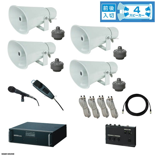 【軽・小型車用 300W スピーカー4台】車載マイクセット 選挙活動や街宣活動、広報、防災放送などに 車用マイクセット 車用スピーカーセット 車用アンプセット 車載スピーカー 車載アンプ(整理番号 C300-4)